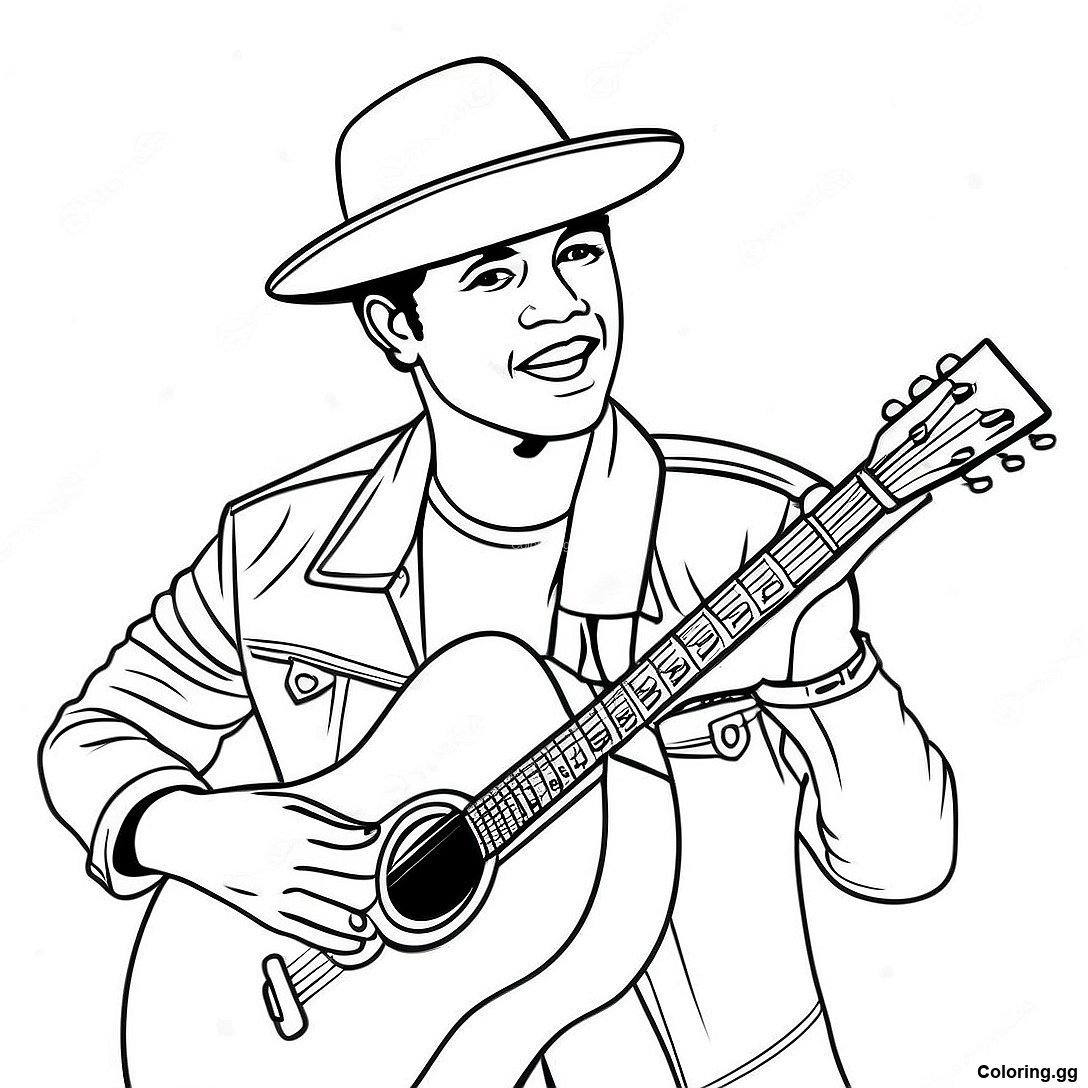 د برونو مارز د ګیتار سره د رنګولو پاڼه د چاپ وړ PDF ډاونلوډ کړئ