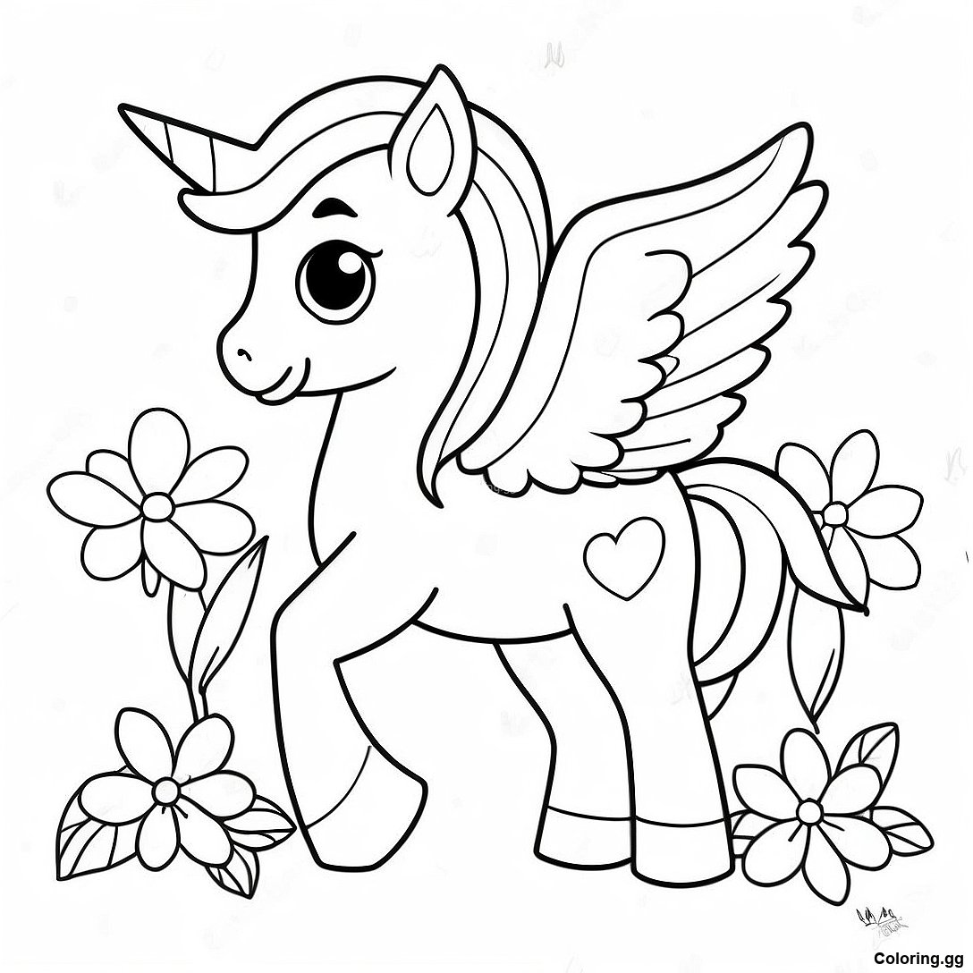 د د ګلونو سره خوږ پګاسوس رنګولو پاڼه د چاپ وړ PDF ډاونلوډ کړئ