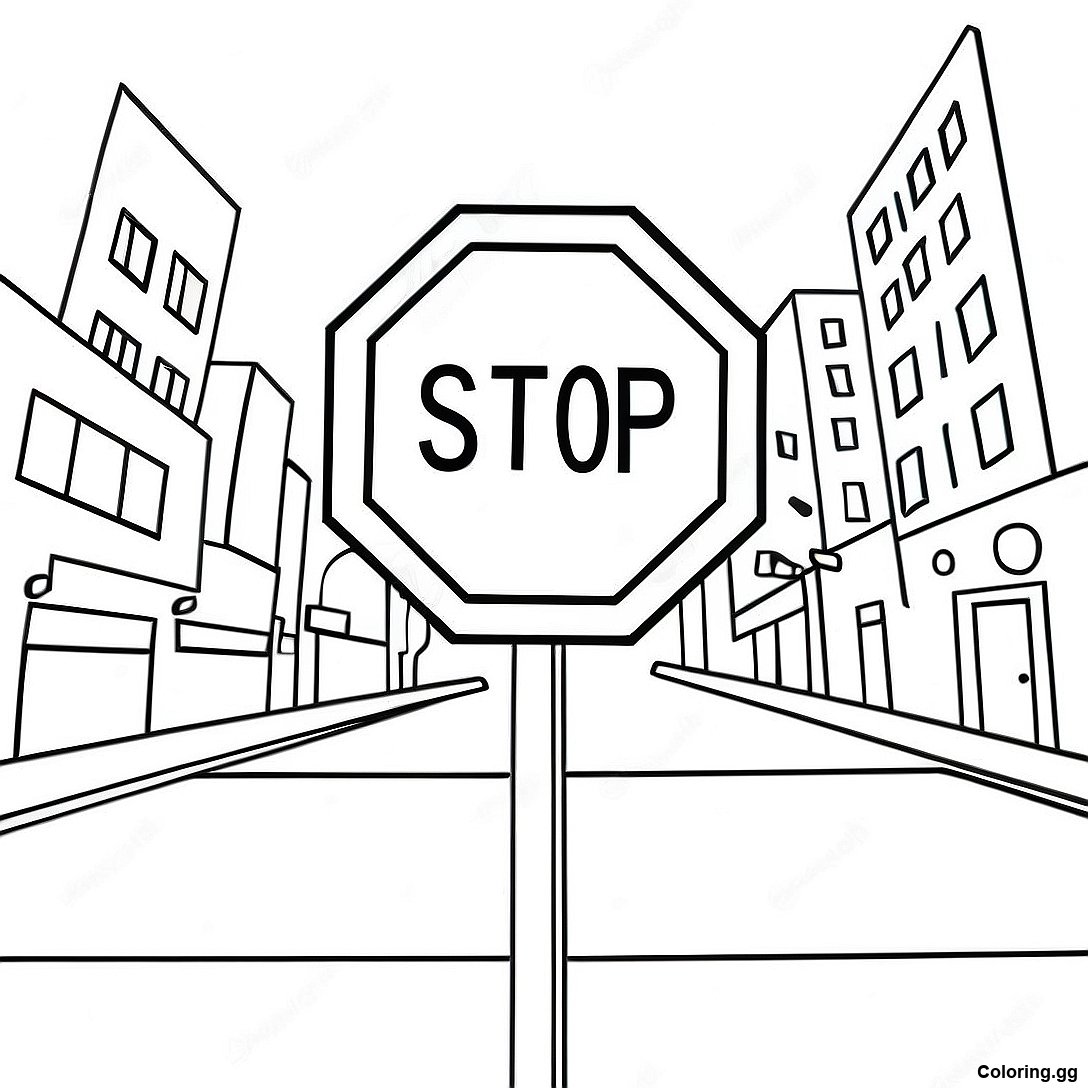 د کارټون د ودریدو نښه په ښار کې رنګولو پاڼه د چاپ وړ PDF ډاونلوډ کړئ
