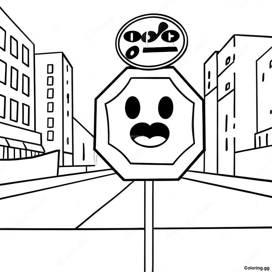 د کارټون د ودریدو نښه په ښار کې رنګولو پاڼه د چاپ وړ PDF ډاونلوډ کړئ