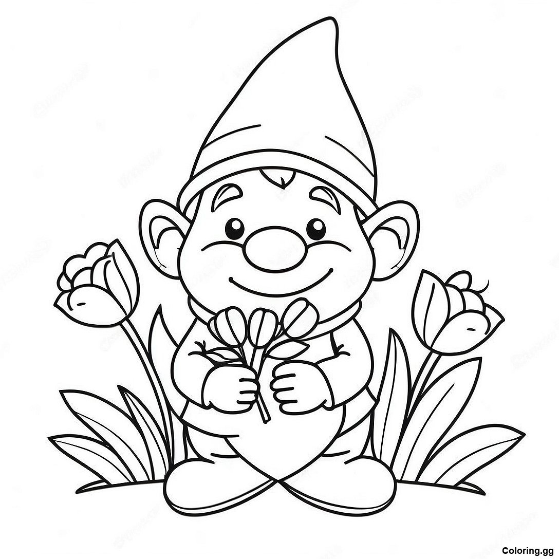 د خوشحاله ولنتاین ګنوم چې ګلونه لري د رنګولو پاڼه د چاپ وړ PDF ډاونلوډ کړئ